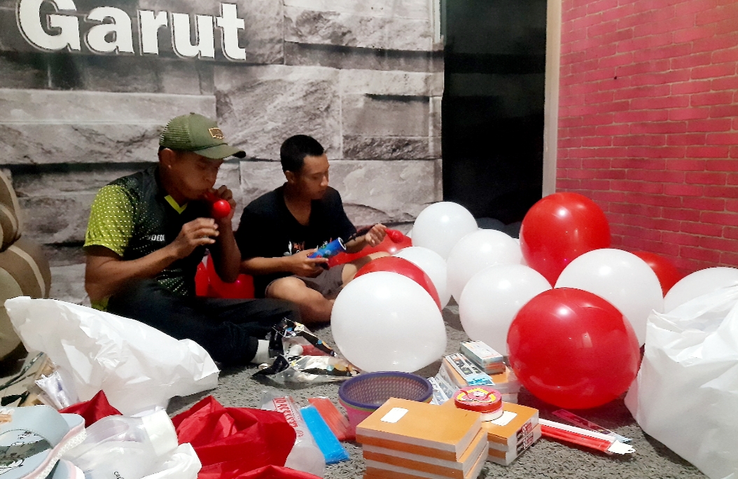 Warga bersama pengurus bergotong royong mempersiapkan berbagai keperluan untuk pelaksanaan lomba Agustusan yang akan digelar dalam rangka memperingati HUT Republik Indonesia Ke-80. Kegiatan persiapan ini dipusatkan di Kantor Redaksi Surat Kabar dan Media Online Harian Garut News.