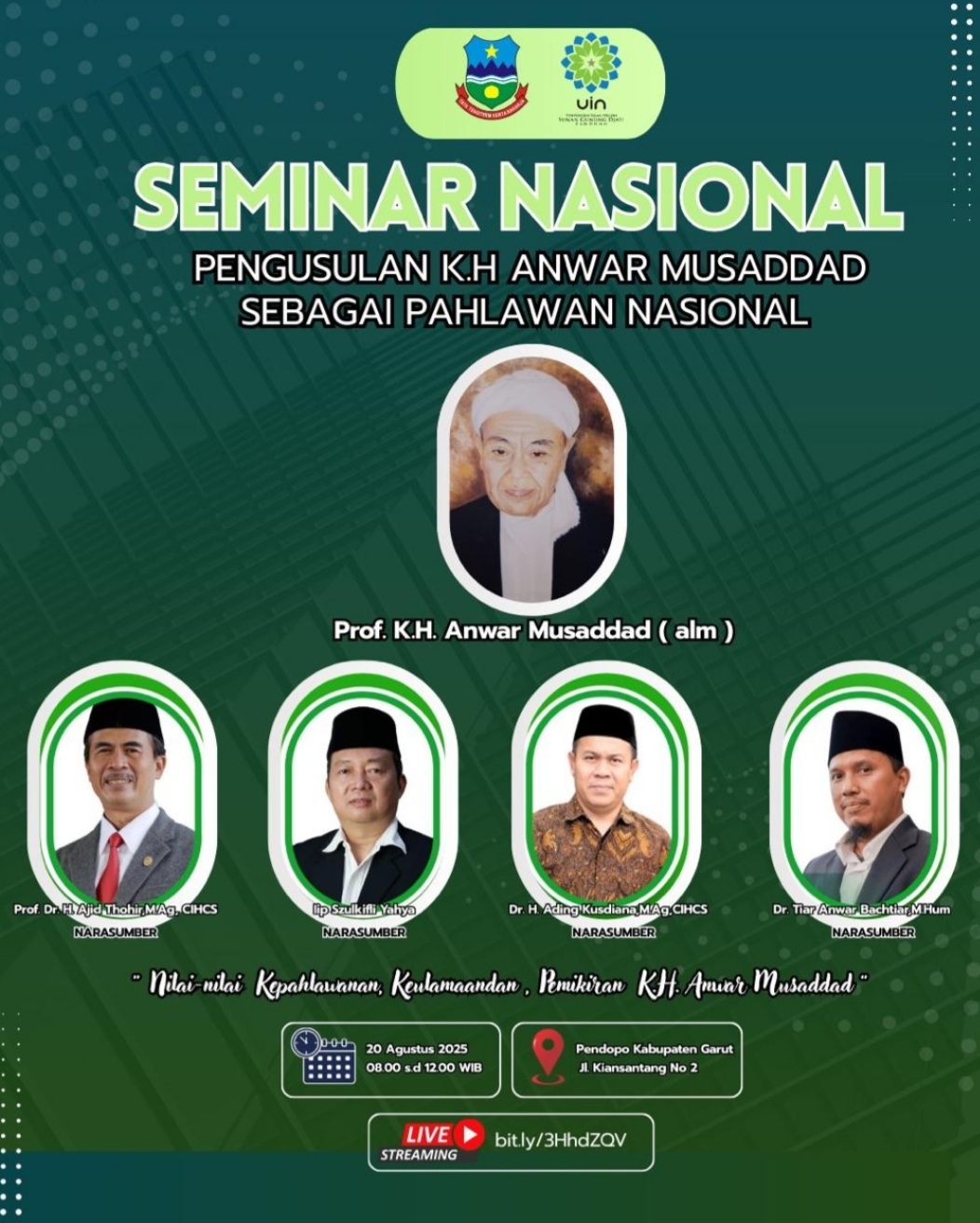 ”Seminar ini secara khusus membahas pengusulan Almarhum KH. Anwar Musaddad sebagai Pahlawan Nasional dari Jawa Barat. Beliau adalah sosok yang lahir di Garut, memiliki pendidikan yang bukan berorientasi untuk para ningrat, dengan memberikan pemahaman yang luas tentang bagaimana kita memiliki hubungan toleransi yang tinggi,” jelas Bupati Syakur.