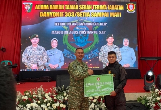 “Saya berpesan siapapun Danyonnya tetap dukung dengan loyalitas dan dedikasi yang tinggi serta meyakini bahwa batalyon ini bisa memiliki kemampuan lebih. Setiap manusia ada kelebihan dan ada kekurangan, untuk itu saya mohon maaf bila selama saya memimpin ada kekurangan dan kesalahan. Saat ini juga saya akan menyerahkan paket umroh kepada prajurit terbaik yakni Praka Imam Sudrajad, semoga berkah,” tutup Letkol. Inf Angga.