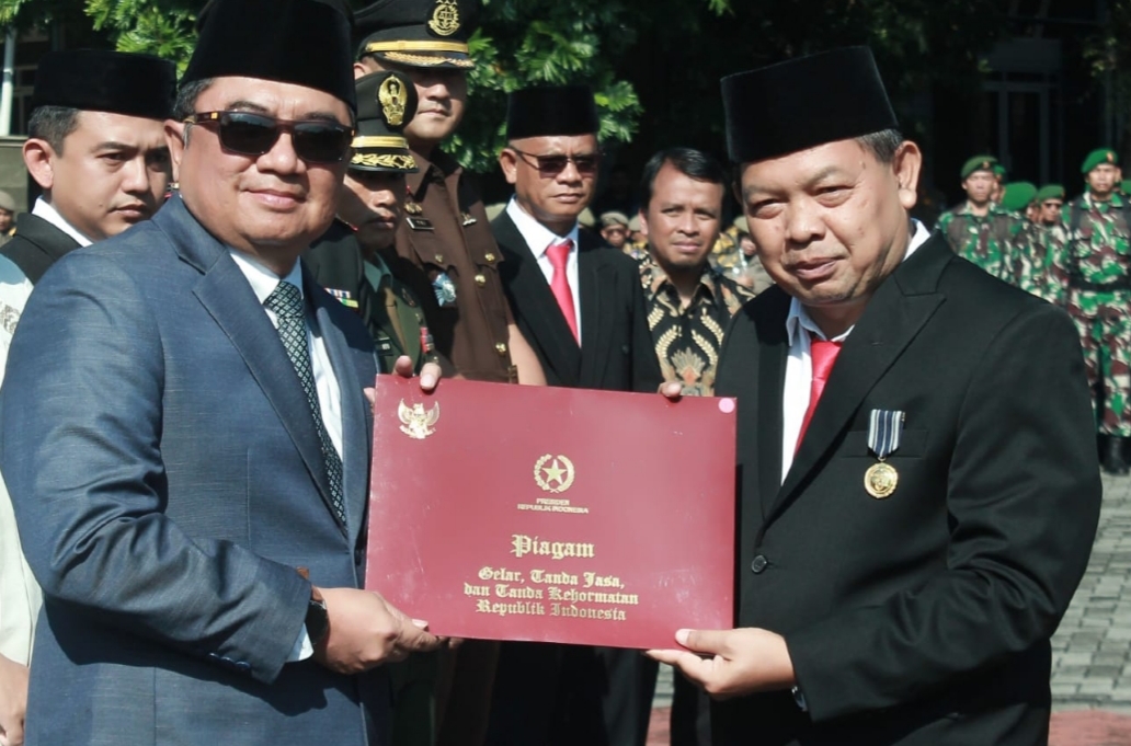 HARIANGARUTNEWS.COM – Dalam upacara peringatan Hari Kesaktian Pancasila tahun 2025, di Lapangan Setda Garut, Rabu (01/10/2025), beberapa Aparatur Sipil Negara (ASN) di lingkungan Pemerintah Kabupaten (Pemkab) Garut, menerima tanda jasa dan tanda kehormatan dari Presiden Republik Indonesia, Satyalancana Karya Satya, yang langsung disematkan oleh Bupati Garut Abdusy Syakur Amin.