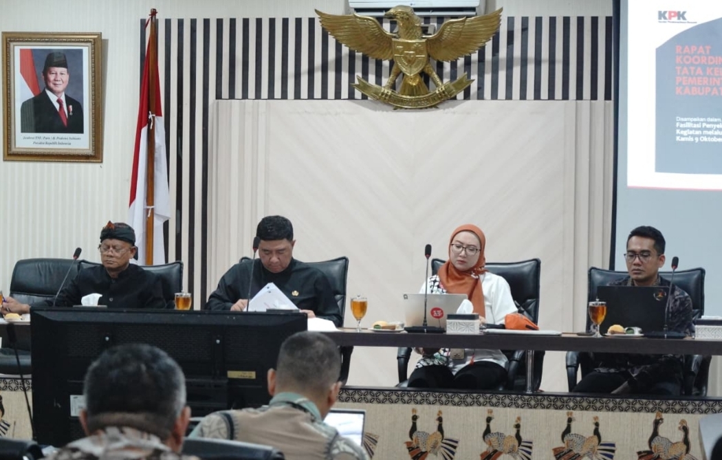 HARIANGARUTNEWS.COM – Dalam rangka Rapat Koordinasi Evaluasi Perbaikan Tata Kelola Pemerintah Daerah melalui Survei Penilaian Integritas (SPI) dan Monitoring Controlling Surveillance for Prevention (MCSP), Bupati Garut, Abdusy Syakur Amin, menerima kunjungan Komisi Pemberantasan Korupsi Republik Indonesia (KPK RI) di Ruang Rapat Sekretariat Daerah Garut, Jalan Pembangunan, Kecamatan Tarogong Kidul, Kamis (09/10/2025). Kegiatan turut dihadiri Sekretaris Daerah dan pimpinan SKPD di Kabupaten Garut.