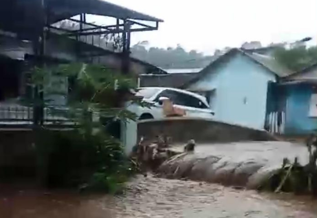 “Aliran sungai Cibuyutan yang merupakan aliran air dari Leuweung Tiis Warungpeuteuy dan Kuyamut meluap merendam pemukiman warga di dua Kampung, di dua desa,” ujarnya.